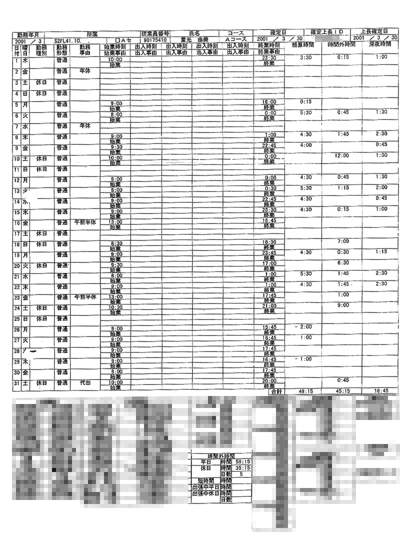 という3つのイベントがありました。偶然なのか嫌がらせなのかよくわかりません。会社からの嫌がらせに屈したくない、そう思って、今回の法廷では、「乙1号証は当時私が会社に提出した勤務表ではない」とはっきり発言しました。