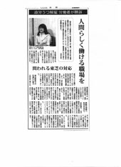 8時間労働制の対象外が拡大しようとする事に対する疑問の内容の記事のなかで、私の裁判が「東芝」の社名入りで掲載されました。 |