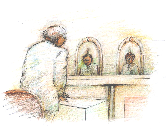 最高裁の門の中に入ると、空港にある金属チェックのゲートをくぐったのち、荷物はロッカーに預け、筆記用具だけを持ち、最高裁の中へ。