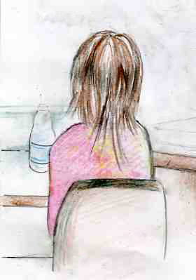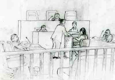 法廷スケッチ(友人画) 主尋問を受けている原告