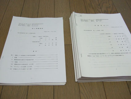 左が原告側提出分、右が東芝側提出分です。東芝側の書面がすごく多い!のがわかると思います。