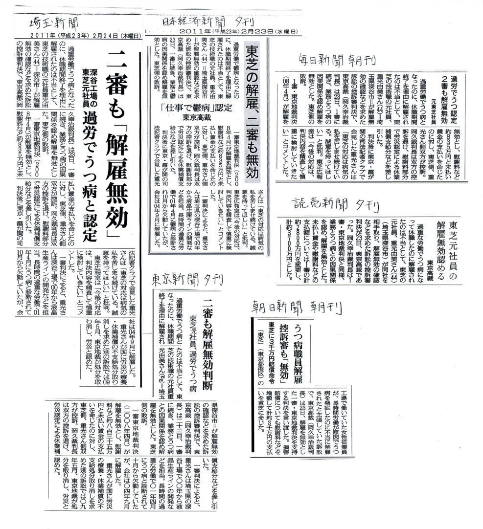 2011年2月23日 「東芝の解雇無効」判決のマスコミ報道