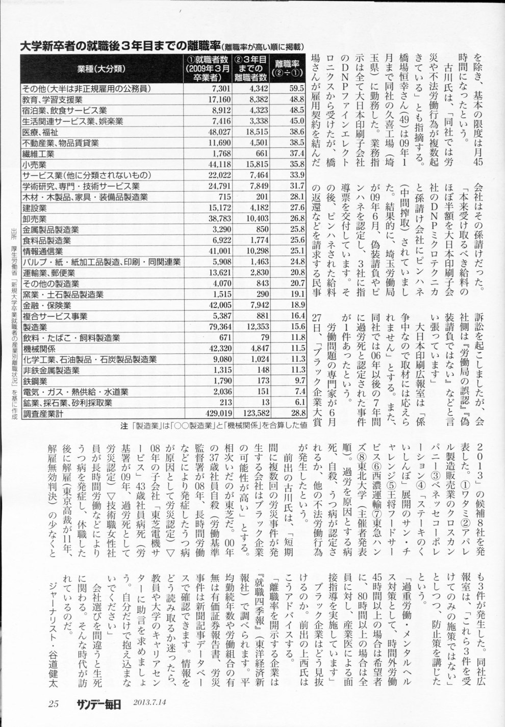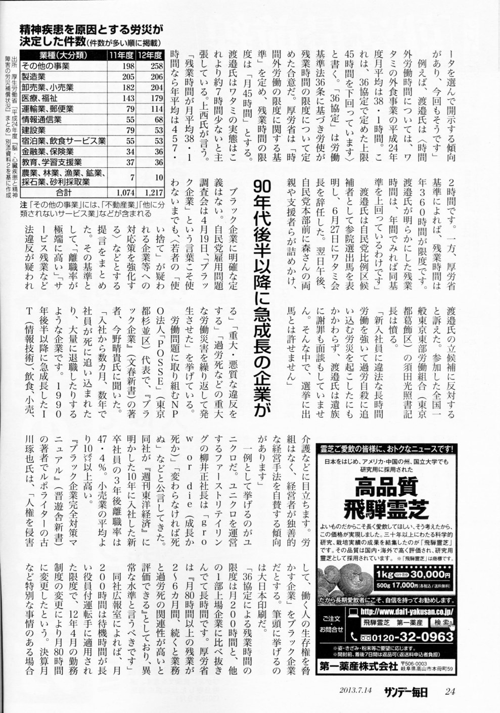 2013年7月14日 サンデー毎日 ブラック企業の見抜き方