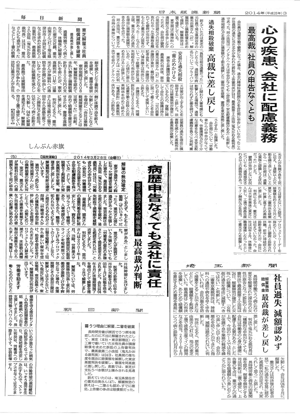 2014年3月24日 最高裁判決新聞報道まとめ