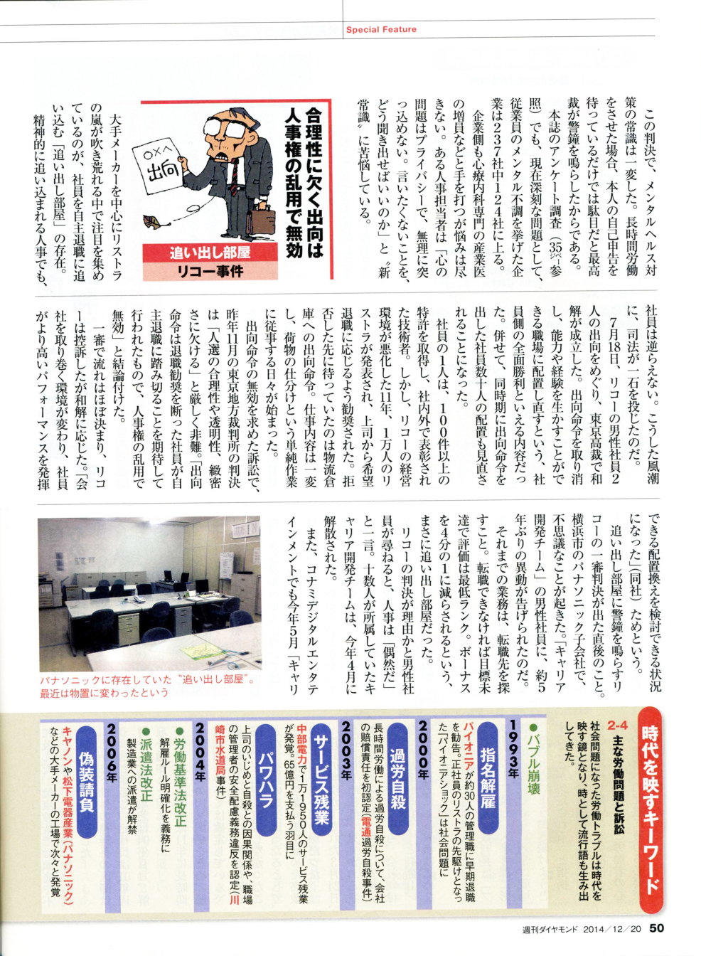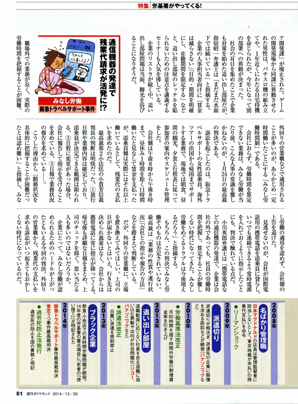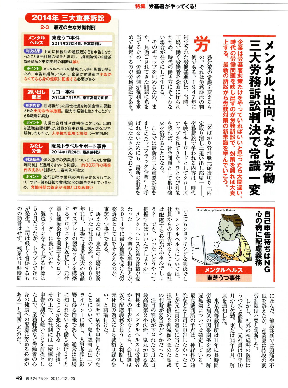 2014年12月14日 週刊ダイヤモンド12月20日号 労基署がやってきた